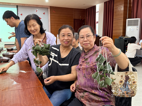 包粽子環節中,經驗豐富的門棟長李師傅主動當起老師,他一邊熟練地操作著,一邊耐心細致地向其他成員傳授包粽子的技巧:“先把粽葉卷成漏斗狀,接著放入適量的糯米和餡料,最后用棉線緊緊纏繞。”在他的指導下,大家紛紛動手嘗試。現場,大家一邊交流著包粽子的心得,一邊分享著平日里社區工作中的點點滴滴,歡聲笑語回蕩在活動現場,情感也在一次次的交流中不斷升溫。