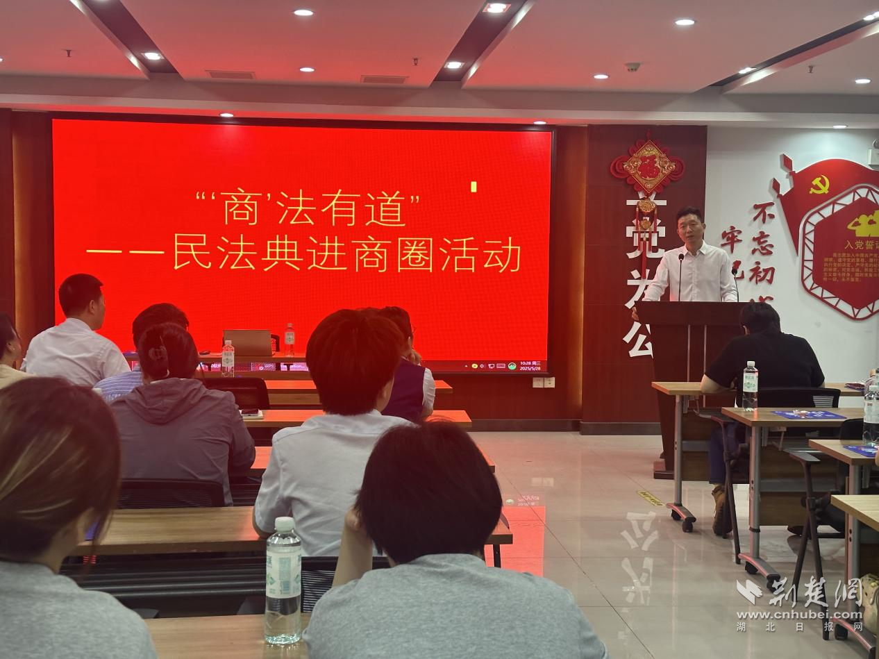 荊楚網(湖北日報網)訊(通訊員 程曦)為深入推進民法典普法宣傳,助力中小企業提升依法經營能力,5月28日上午,在第五個“民法典宣傳月”活動期間,江漢區司法局聯合花水街道辦事處走進江漢路商圈,組織開展“‘商’法有道”——民法典進商圈專題培訓活動。活動在江漢關社區黨群服務中心舉行,吸引了近50位企業負責人及管理人員參與。