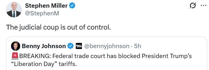 美國白宮辦公廳副主任斯蒂芬·米勒在社交媒體上寫道:“司法政變已經(jīng)失控。”