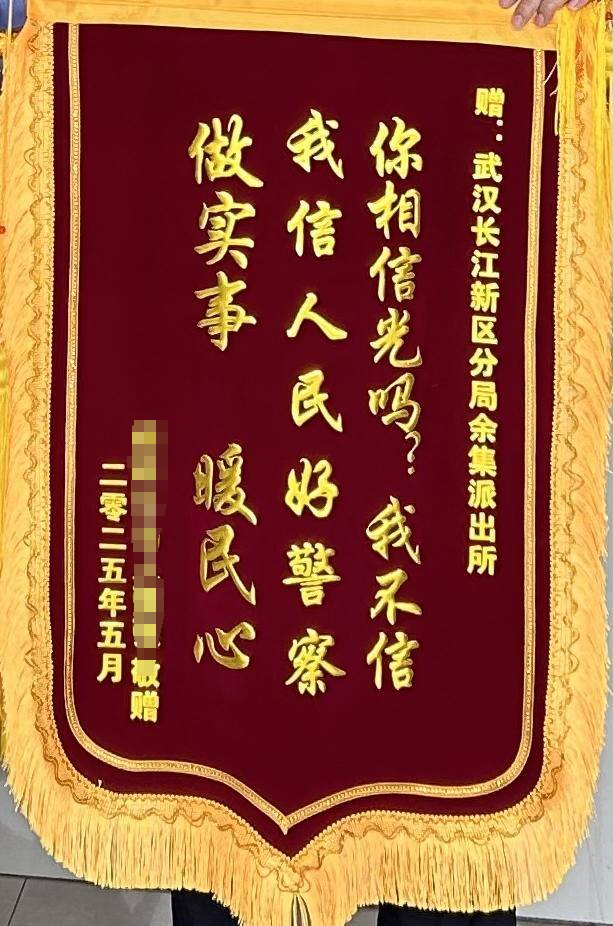 荊楚網(湖北日報網)訊(記者 白云 通訊員 王冠迦)“我信人民好警察 做實事 暖民心。”這是5月26日市民張女士送給武漢長江新區公安分局余集派出所田洋和夏令警官的錦旗上寫下的暖心話語。這面別出心裁的錦旗背后,是一起民生小案的高效偵破故事。