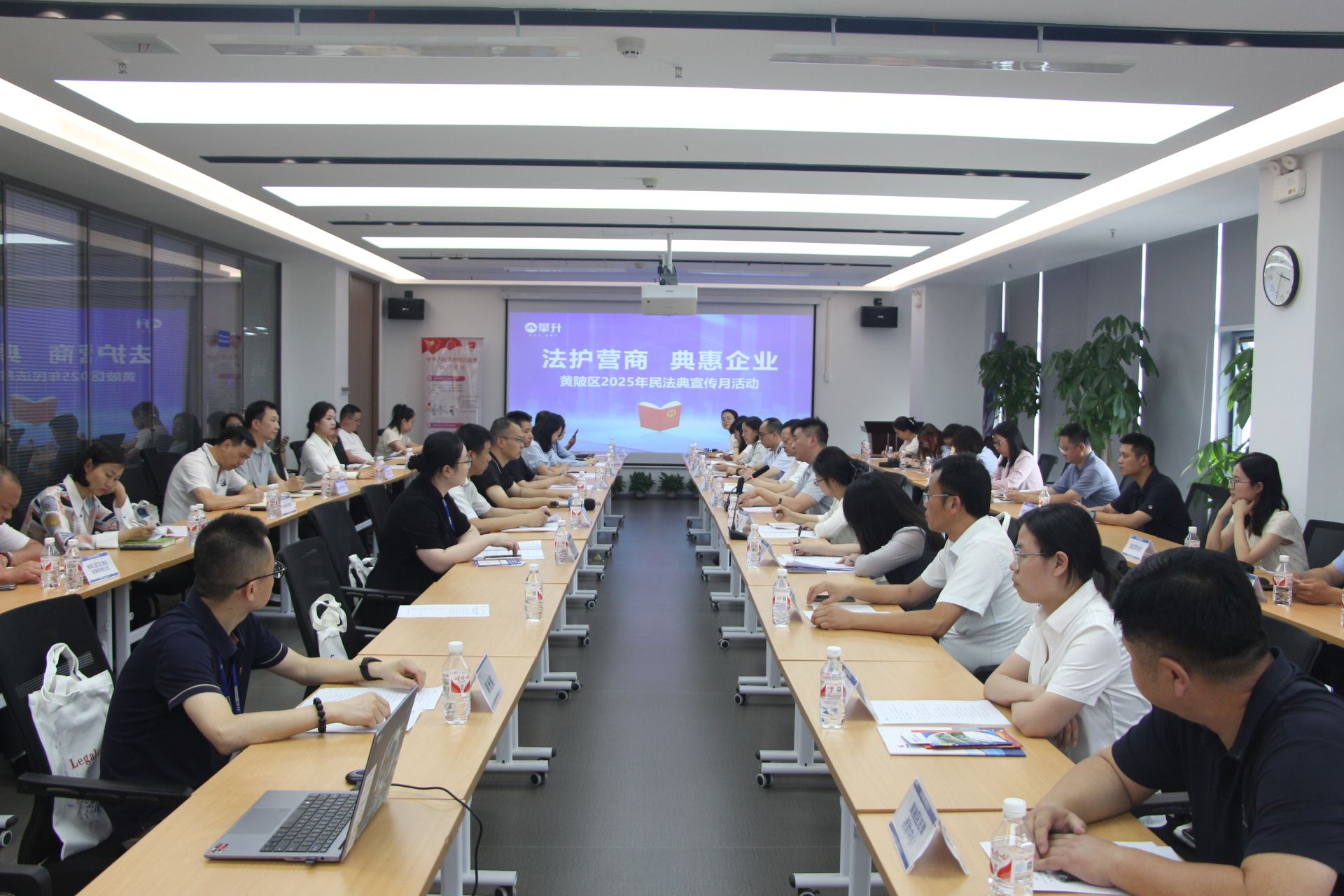 會前,與會人員共同參觀攀升科技園智能工廠,近距離感受科技魅力。活動現(xiàn)場,區(qū)委社工部、區(qū)司法局、灄口街道領(lǐng)導(dǎo)為各企業(yè)代表贈送民法典書籍。