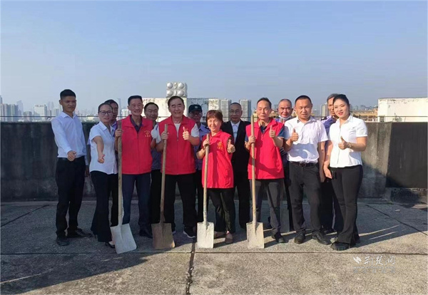 羅新華帶領志愿者清理樓頂種菜整改。 通訊員供圖