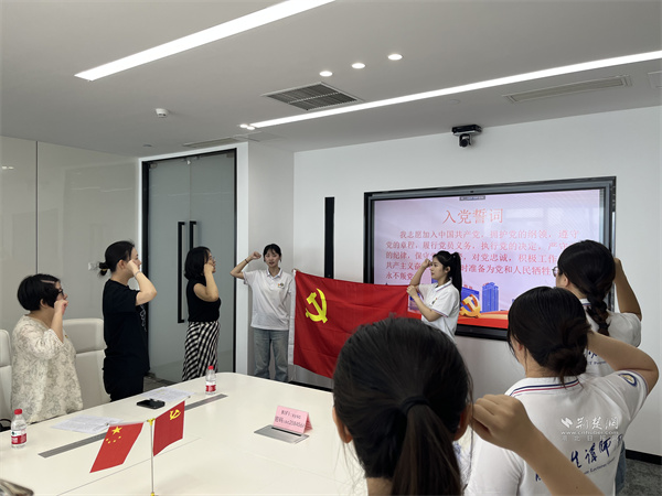 支部主題黨日以“5+N”活動模式進行,來自部分樓宇企業(yè)黨支部、楊園街道機關黨支部和武漢理工大學馬克思主義學院研究生講師團黨支部的30余名黨員共同參與。活動伊始,參會黨員舉起右臂,重溫入黨誓詞,用錚錚誓言詮釋入黨初心。樓宇聯(lián)合黨支部書記、二橋社區(qū)副書記徐瑋為參會黨員規(guī)范展示了支部主題黨日的5項規(guī)定動作。