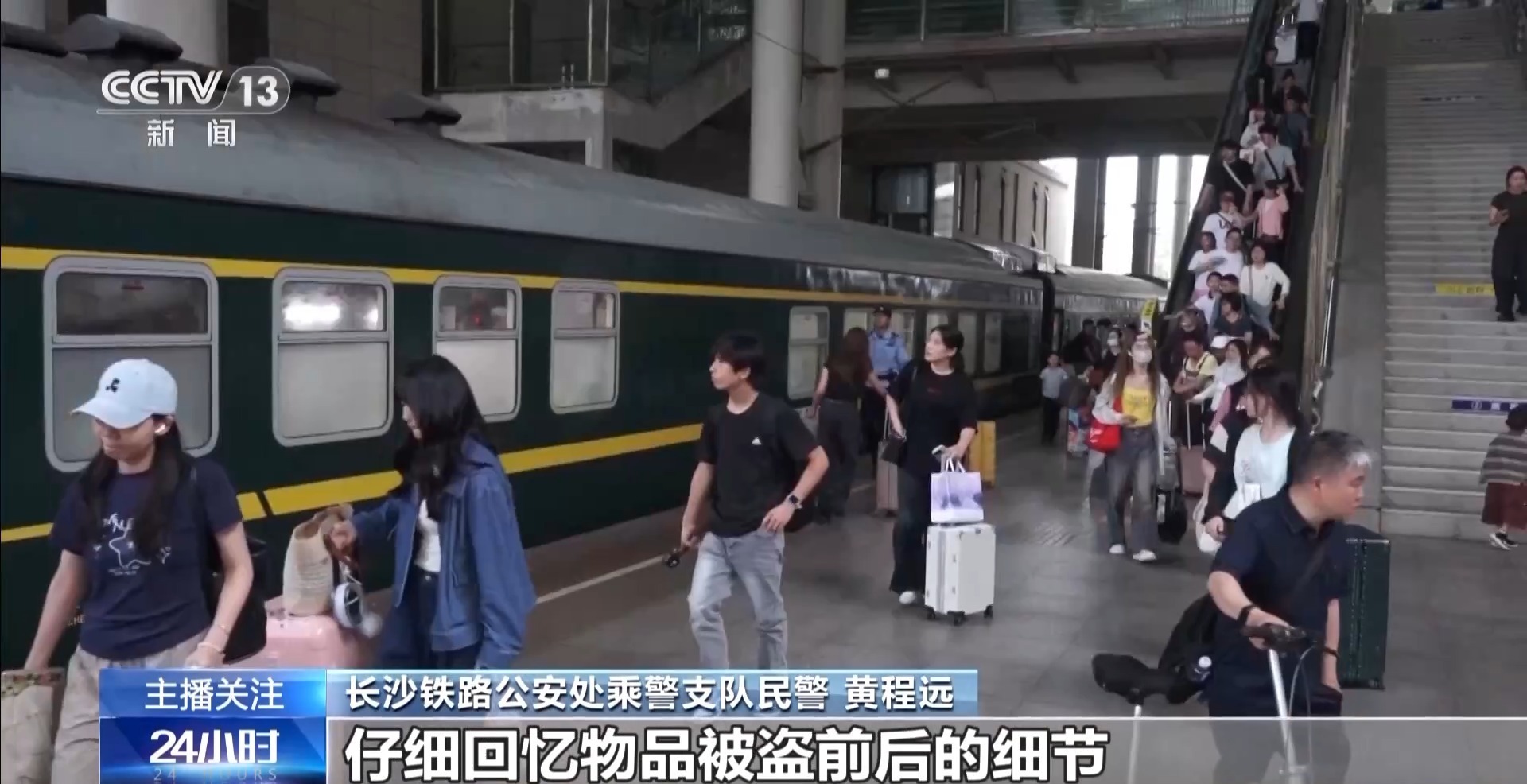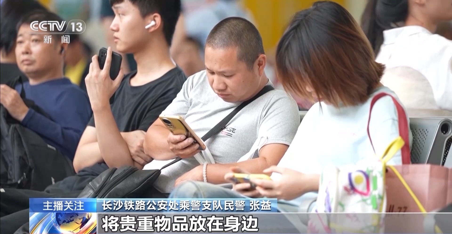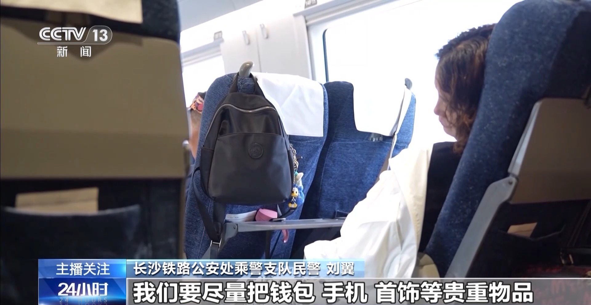 長沙鐵路公安處乘警支隊民警 張益:比如有的旅客在候車時,將貴重物品放在身邊,卻因為玩手機或打瞌睡而沒有留意,不法分子就可能順手將貴重物品拿走。特別是現在大家對手機充電的需求較大,一旦手機放置在無人看管的位置充電,就很容易丟失被盜。還有在列車上,一些旅客把行李放在頭頂行李架上,卻長時間不關注,不法分子可能在列車??炕蜍噹麅热藛T走動時,趁機偷走行李中的貴重物品。