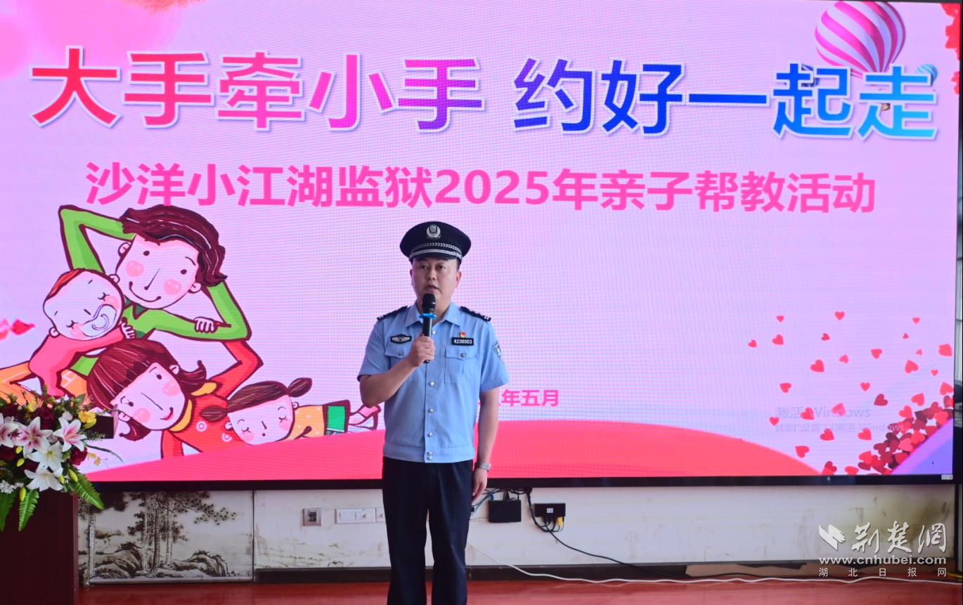 荊楚網(湖北日報網)訊(通訊員 房巍、朱小俊、楊端)為進一步提高教育改造質量,助力服刑人員未成年子女身心健康成長,5月29日,在六一兒童節到來之際,沙洋小江湖監獄組織開展“大手牽小手 約好一起走”親情幫教活動。24個家庭共66名服刑人員家屬走進高墻,同慶“六一”,共促“新生”。監獄黨委委員、政治處主任王飛,黨委委員、副政委付雪松,黨委委員、副監獄長陳亮全程參加。