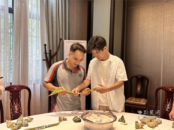 活動當天,現場還舉辦了包粽子活動。糯米粒粒飽滿,粽葉清香撲鼻,水墨江南餐飲部的師傅化身 “民俗導師”,現場展示包制絕活。一片片粽葉在手中翻飛,轉眼間就變成造型別致的粽子。