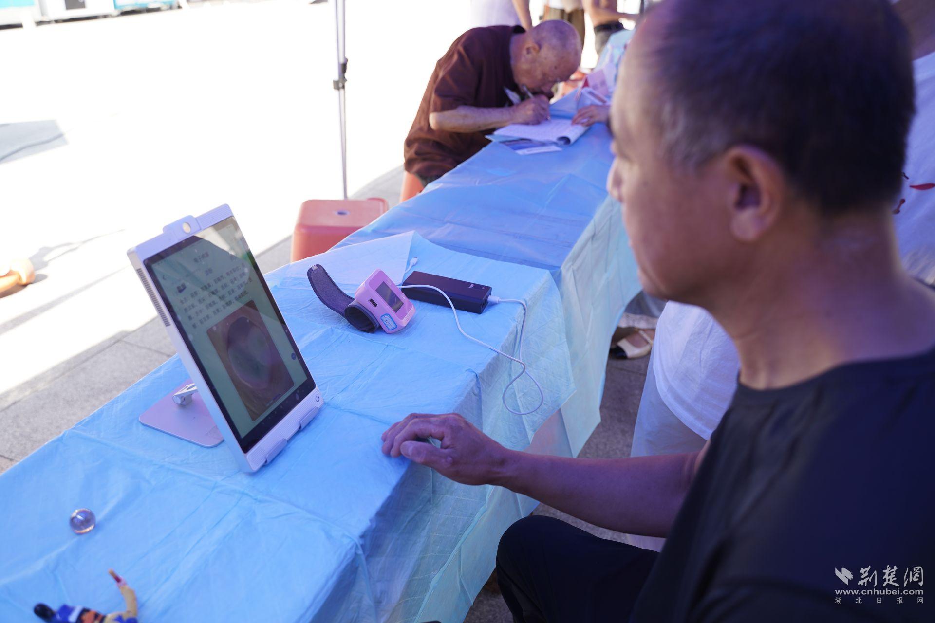 荊楚網(湖北日報網)訊(記者文放 通訊員劉金山)5月30日,東瀾岸社區飄起淡淡艾草香。湖北中醫藥大學黃家湖醫院聯合科技企業知醫邦,一場融合千年智慧與數字科技的"AI賦能中醫 端午守護健康"義診活動在此展開。智能舌診儀掃描舌尖30秒生成體質報告,藥膳麻薯包裹著山楂荷葉茶方劑——這場顛覆傳統的端午義診,讓百余位居民觸摸到中醫藥的未來圖景。