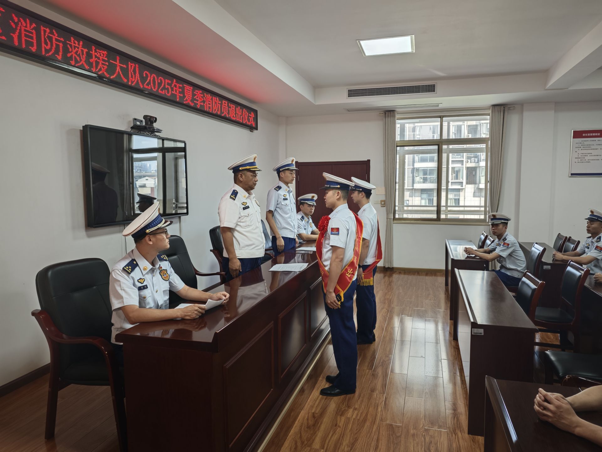 荊楚網(湖北日報網)訊(通訊員 熊宇航 )5月29日,荊州市沙市區消防救援大隊舉行2025年夏季消防員退出儀式,送別即將告別消防救援隊伍、開啟人生新篇章的消防員,向他們致以最崇高的敬意與最真摯的祝福。