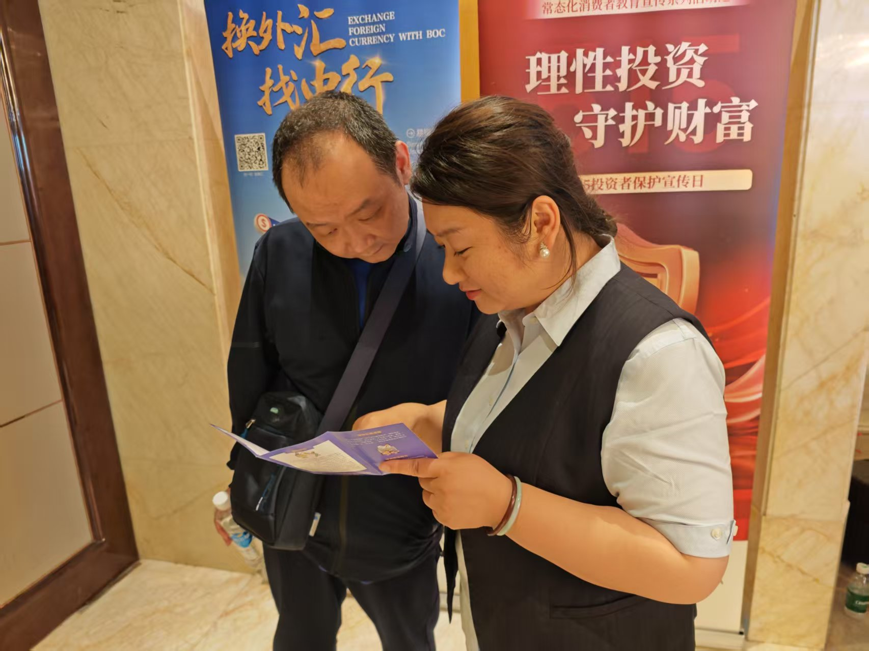 活動當日,該行設置了咨詢服務臺,通過圖文并茂的展板、直觀簡潔的宣傳折頁,為大家系統介紹了國際匯款、結售匯、外幣兌換與儲蓄,以及個人外匯便利化等業務知識。在宣傳過程中,工作人員還特別強調了理性投資的重要性,“投資有風險,不要一味被高收益迷惑,要選擇正規投資渠道,合理配置個人資產”,并結合實際案例分析常見投資陷阱,幫助大家牢牢守護好自己的“錢袋子”。