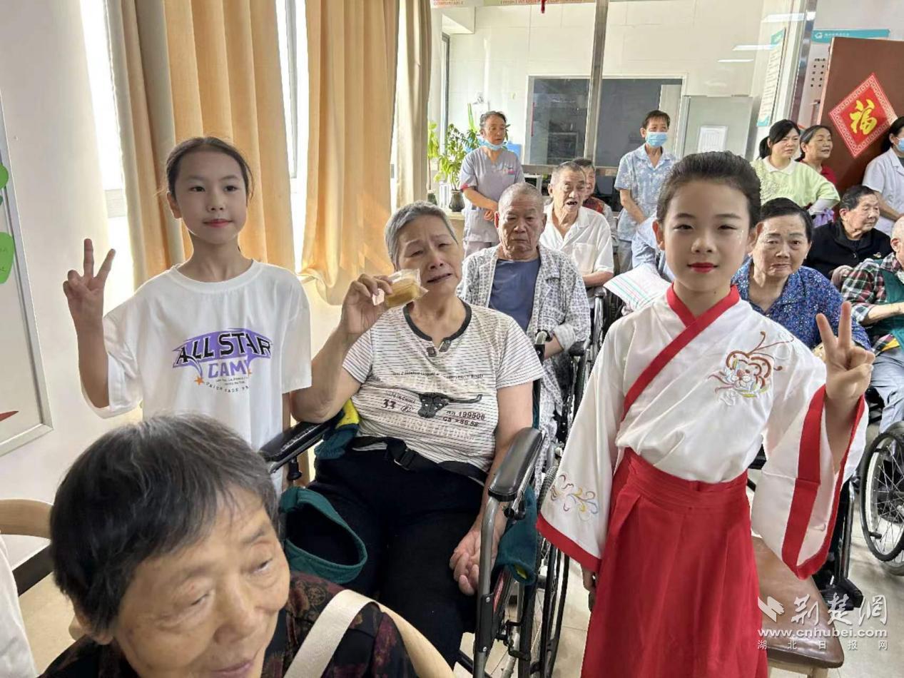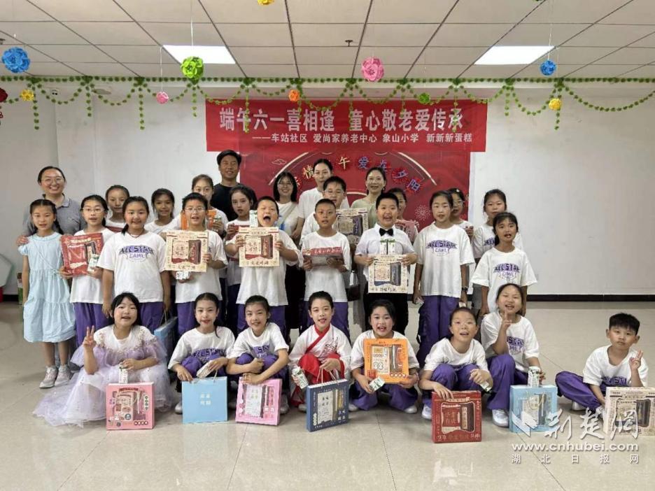 荊楚網(湖北日報網)訊(通訊員 徐江)當艾草的清香縈繞鼻尖,當兒童節的歡歌即將奏響,傳統與童真在初夏時節奇妙碰撞。為弘揚中華民族尊老愛幼的傳統美德,傳承優秀傳統文化,24日上午,泉口街道車站社區聯合象山小學曳舞團,組織社區志愿者、學生及家長代表走進愛尚家養老中心,開展了一場溫馨而歡樂的“端午六一喜相逢,童心敬老愛傳承”主題活動,為養老中心的老人們送去了節日的祝福與關懷。