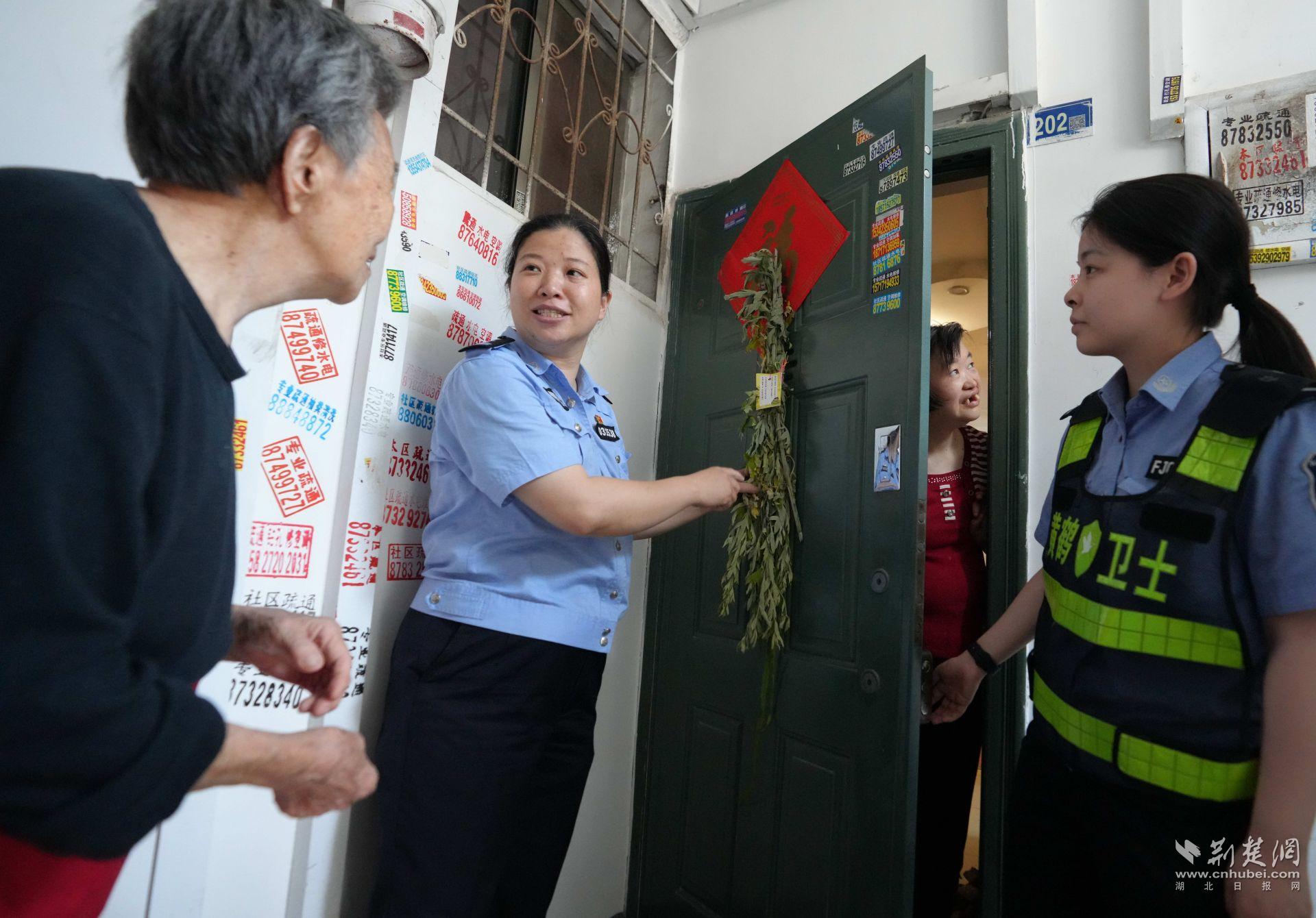 “以前端午掛艾草是驅蚊蟲,今年才知道還能‘防范詐騙’。”78歲的曹婆婆接到帶有反詐標語的艾草后,高興地懸掛在門前。