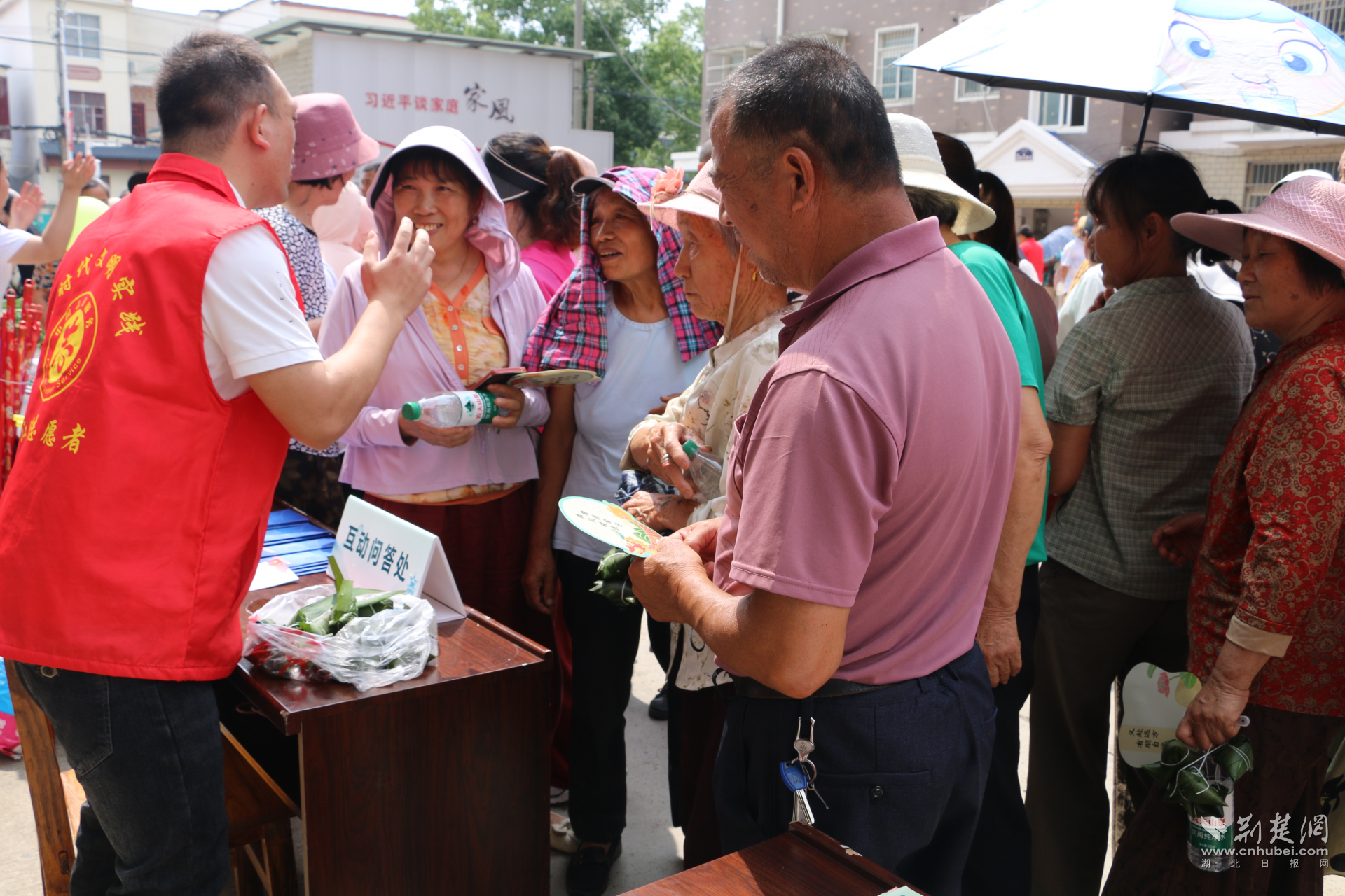 舞臺區兩邊,文明實踐集中活動如火如荼。愛心義診臺前,醫護人員為老人量血壓、講養生;艾草花束制作點飄著淡淡清香,居民們跟著志愿者學習包扎技巧,將驅邪納福的寓意融入一束束青翠中;反詐宣傳員用真實案例講解防騙技巧;觀眾在非遺、科協、防溺水、移風易俗宣傳展板前邊看邊聽宣講;全民健身區則傳來陣陣歡笑,擊打氣球等娛樂游戲讓參與者樂在其中。活動在一片歡聲笑語中落下帷幕。