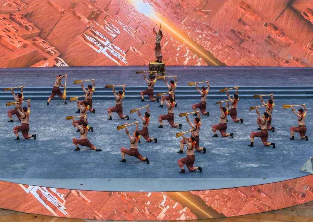 大型情景歌舞《中華大端午》巧妙融合編鐘古樂的千年雅韻與現代交響的磅礴氣勢,演繹出跨時空的音樂對話;民俗秀《香草幽蘭》以華服美裳,展現長江流域傳統(tǒng)服飾與端午習俗的千年變遷;歌舞《何以家國》用“以人民為中心”的時代強音呼應屈子“哀民生之多艱”的思想……啟動儀式還設置了《楚辭》郵票首發(fā)和《楚辭大典》贈送環(huán)節(jié)。