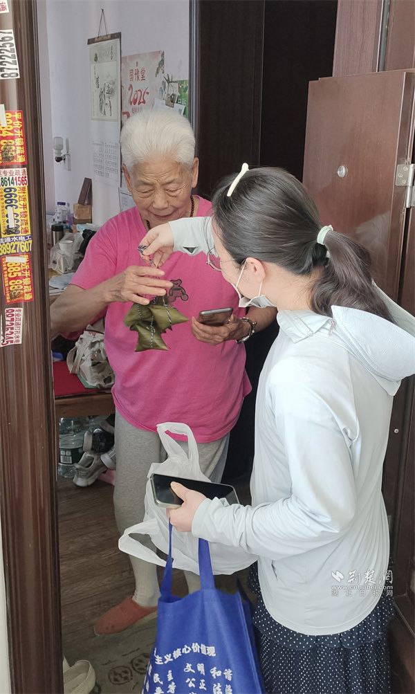端午節(jié)前夕,街道還為老人們準備了慰問物資。由社區(qū)網(wǎng)格員逐一敲開獨居老人的家門,將慰問物資與節(jié)日關(guān)懷送給老人。看著熱騰騰的粽子和慰問品,老人們臉上洋溢著幸福的笑容。