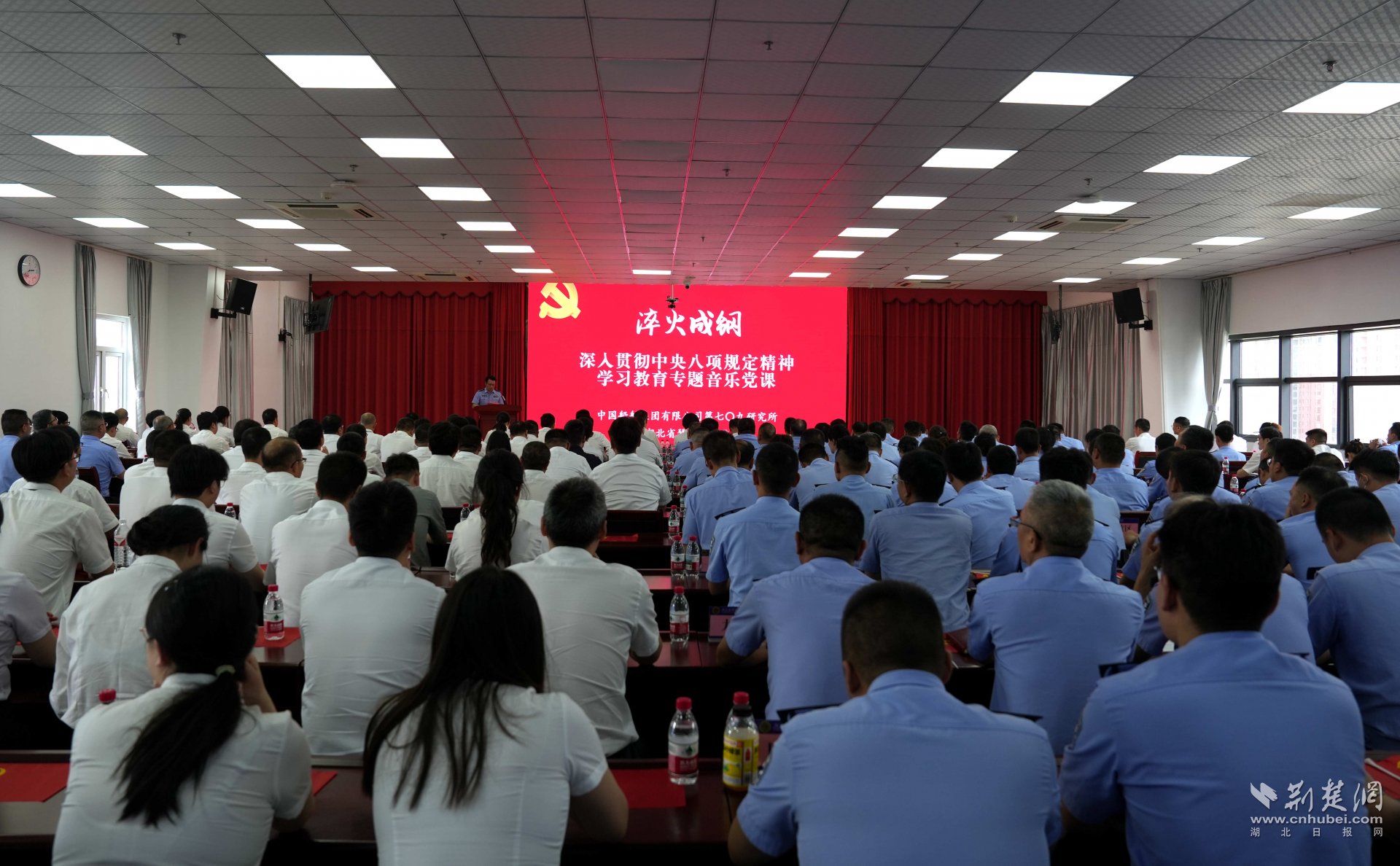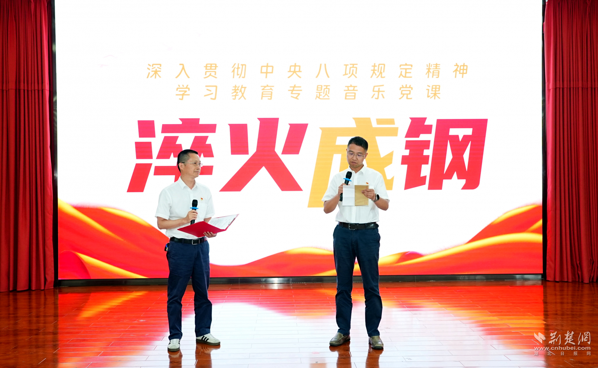 本次音樂黨課特別邀請了湖北廣播電視臺紅色音樂黨課團隊進行宣講。整場音樂黨課以“淬火成鋼”為主題,以《鐵紀鑄魂》《清風固本》《重錘正風》三大篇章為主線,通過《三大紀律八項注意》《南泥灣》《中國人民解放軍軍歌》《沒有共產黨就沒有新中國》《毛委員和我們在一起》《以人民的名義》等紅色經典歌曲、優秀影視作品和互動猜歌、互動答題,串聯起黨的作風建設的艱辛歷程和歷史性變革,將“藝術性、教育性、感染力、吸引力”融為一體,讓全體人員在音樂交流和歷史對話中,感悟初心使命、傳承優良作風。
