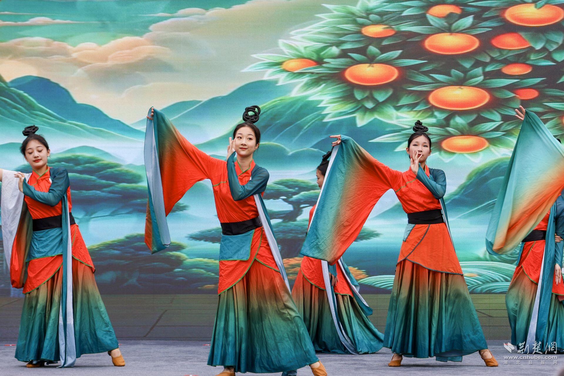 在節目展演環節,情景朗誦《天問》配合宇宙星空全息投影,“遂古之初,誰傳道之?”的叩問穿越千年,引發觀眾對真理的哲思;文化專家深度解讀郵票設計中的楚文化元素,從“乘騏驥以馳騁兮”的紋樣考據到色彩運用的荊楚美學,讓方寸郵票成為可觸摸的文化密碼;古典舞蹈《橘頌》以“后皇嘉樹,橘徠服兮”為靈感,舞者手持橘枝翩翩起舞,煙霧特效營造出“深固難徙,更壹志兮”的高潔意境。