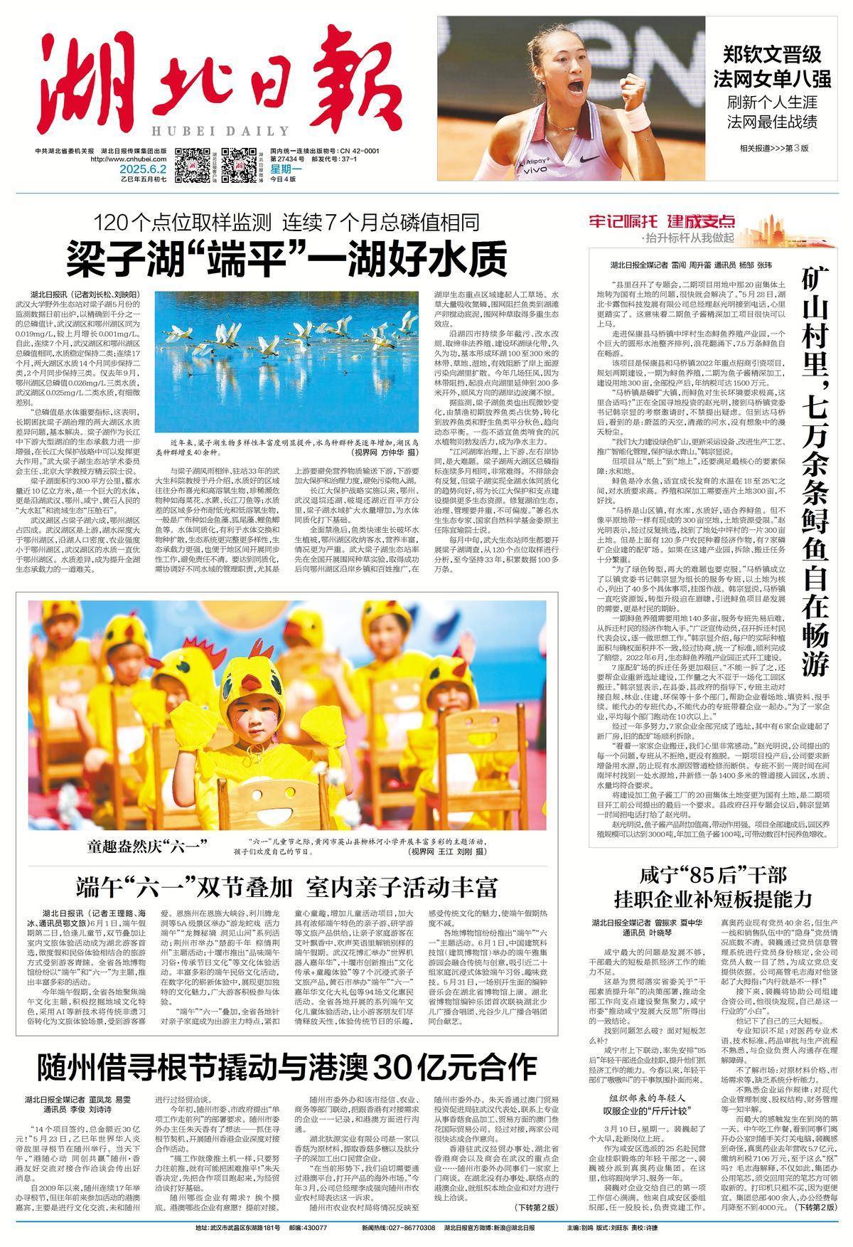 “江河湖庫治理,上下游、左右岸協同是大難題。梁子湖兩大湖區總磷指標連續多月相同,非常難得。”著名水生生態專家、國家自然科學基金委原主任陳宜瑜院士說。