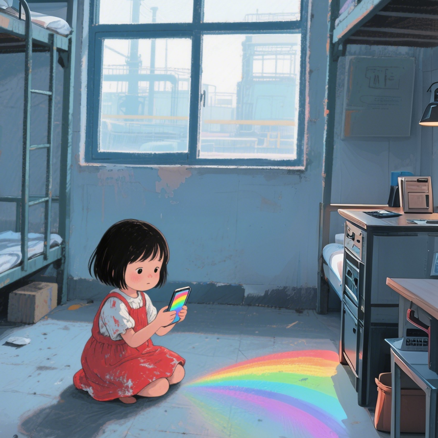 當同齡人在父母懷中撒嬌時,她只能對著虛擬動畫里的彩虹發呆;當其他孩子舉著風車奔跑,她的“伙伴”是爺爺布滿老繭的手掌和工廠永不停歇的轟鳴。