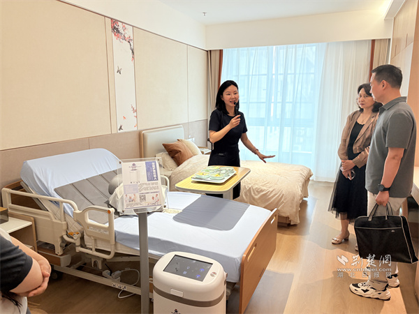 在東湖康養中心,參訪團逐一走訪東湖康養中心文娛室、康復理療區、書畫室、餐廳等功能區,沉浸式體驗各類智慧養老設備,了解康養服務類別、適老設施設備、先進管理模式等情況。“這些設備不是簡單的技術堆砌,而是真正把老年人的生活痛點轉化為服務觸點。”東湖康養中心相關負責人介紹道。
