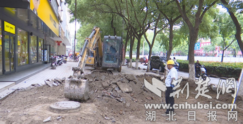 在市農商行路段,人行道已經完成混凝土墊層澆筑,正在鋪設人行道磚;在市煙草局路段,挖掘機正在對人行道破損路面進行開挖,為后期混凝土墊層的澆筑做準備。