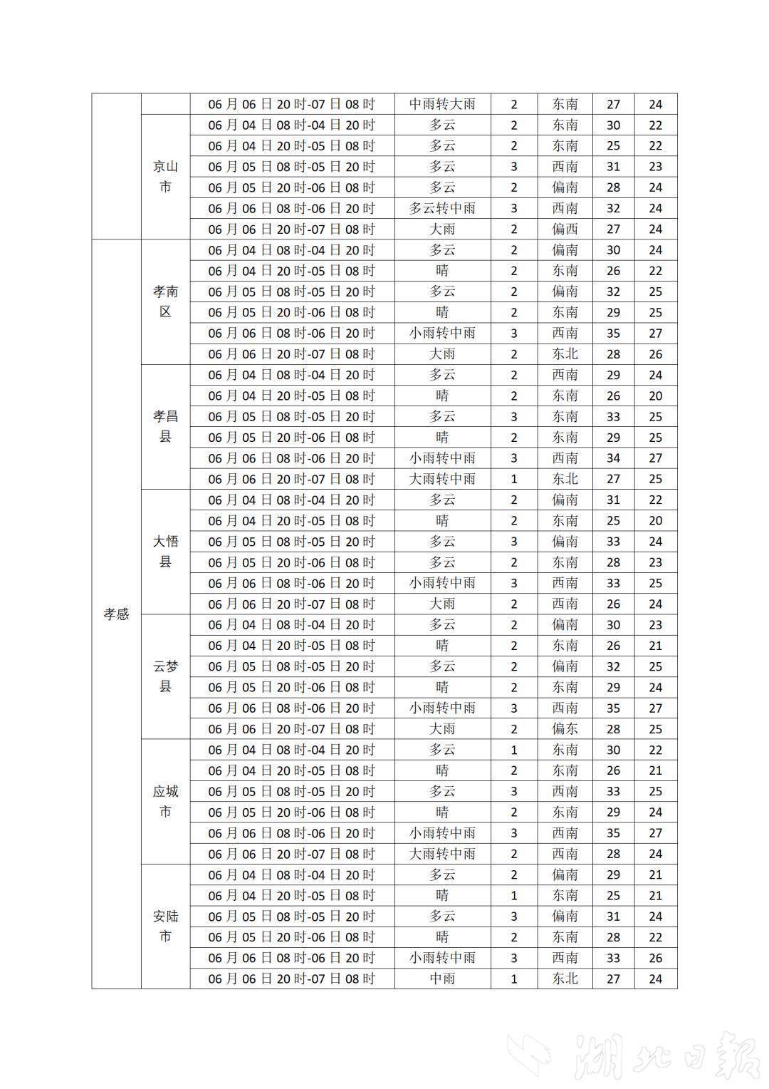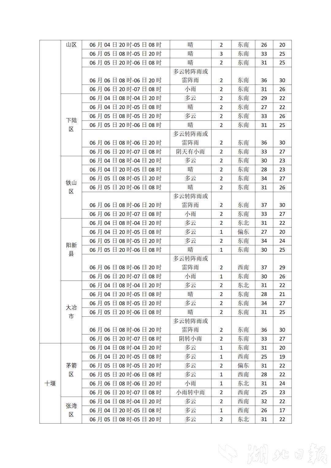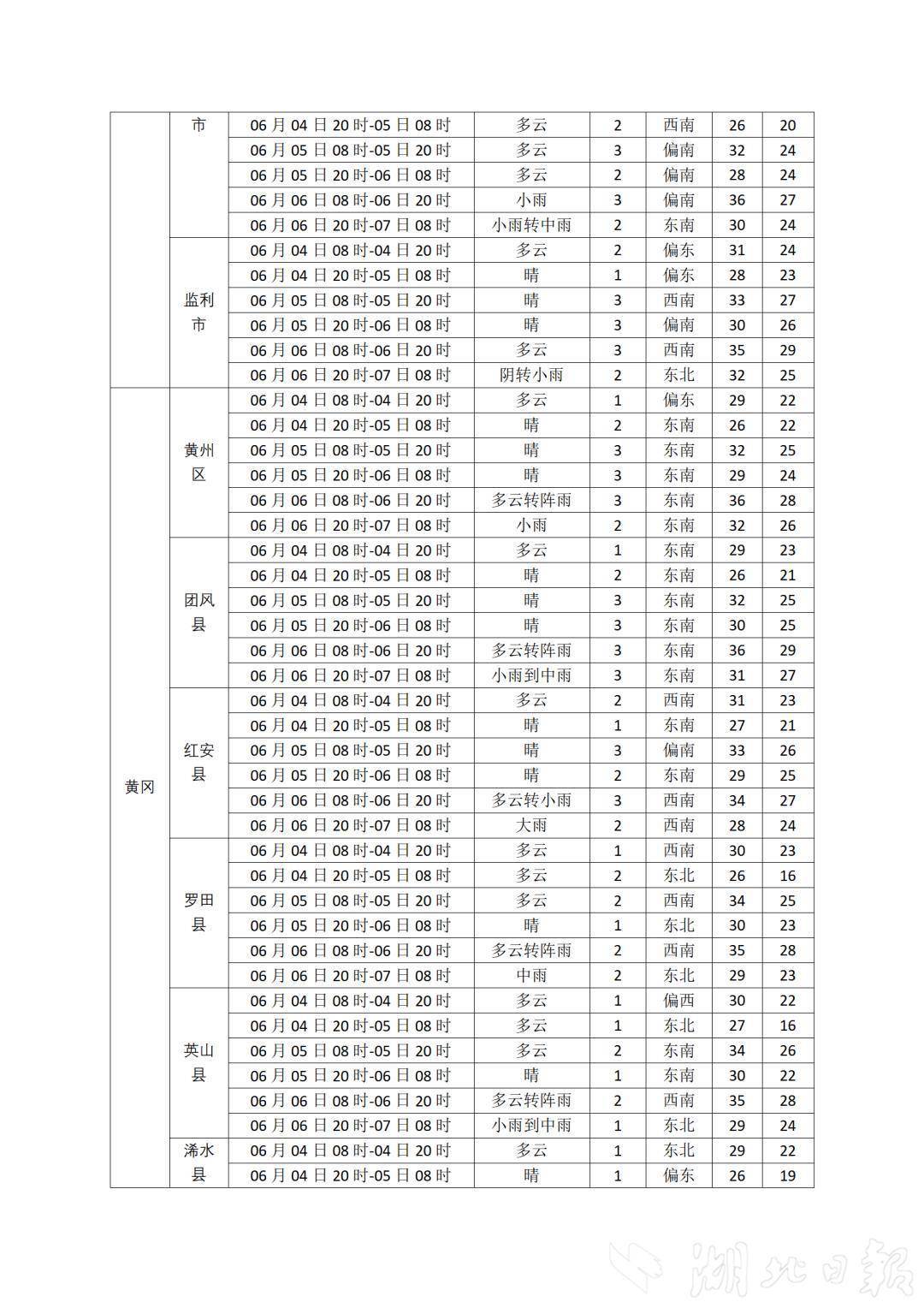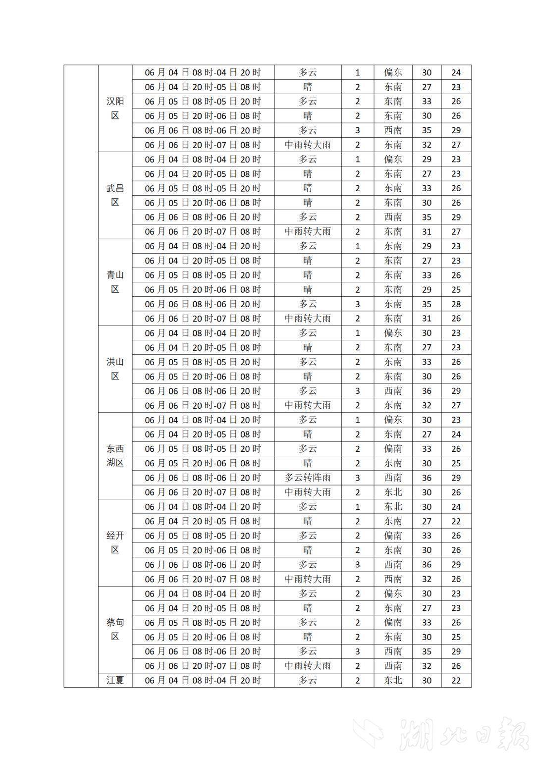 湖北日報訊(記者曾莉)高考進入倒計時!6月4日,湖北省氣象臺發布2025年高考專題氣象服務預報,預計6月4日-5日湖北以多云間晴天氣為主,5日夜間西部局地有陣雨,5日凌晨局地有霧。6日-9日有較強降雨過程,局地伴有短時強降水、雷暴大風等強對流天氣。預計接下來三天氣溫逐步上升,6日最高氣溫西部29℃至33℃、中東部33℃至36℃。