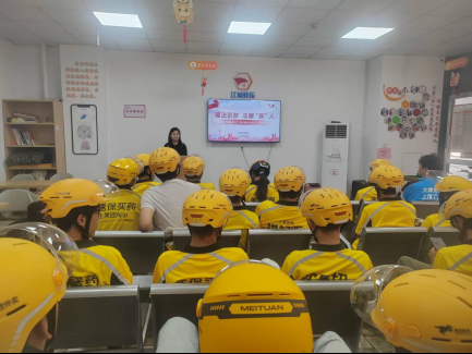 5月27日,武昌區公共法律服務團走進徐家棚街道新就業群體服務驛站,利用工作間隙,為40余名新就業群體送上集普法講座、法律咨詢、法律援助于一桌的“法治快餐”。