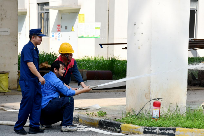 培訓結束后,全體參訓人員移步至實操場地。消防宣講員現場演示了滅火器“提、拔、握、壓”四步操作法及消火栓水帶連接技巧,并組織員工分組進行滅火演練。參訓人員輪番上陣,在消防人員的指導下成功撲滅“火情”,切實提升了實戰能力。