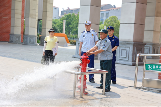襄陽消防監督員測試教學樓周邊消火栓水壓 劉旭/攝