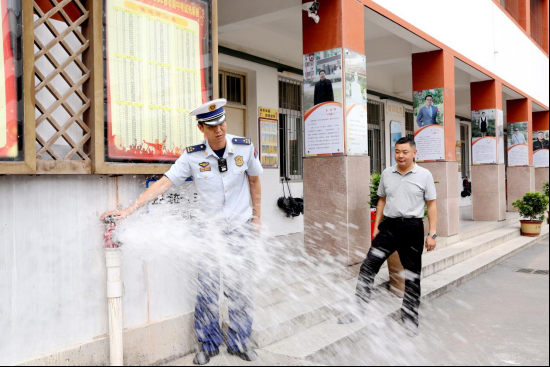 孝感消防監督員深入考點學校檢查消防設施。孫芳/攝