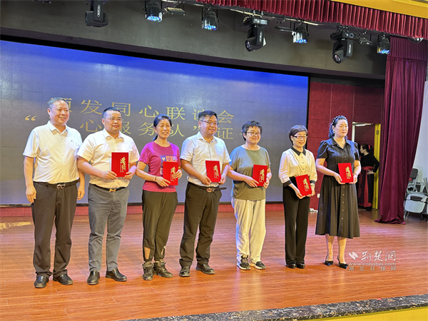 會議在老年大學舞蹈隊《愛我中華》的律動中拉開帷幕,隨后審議通過《章程》《工作制度》,正式成立“同心聯誼會”,并為文化分會、研學分會授牌。歌伴舞《領航》奏響時代強音之際,“五心服務隊”同步亮相,由律師、政協委員組成的“同心解鈴家”擔綱矛盾調解,納稅大戶領銜的“同心企明星”賦能經濟發展,社會組織組成的“同心社想家”培塑文化生態,高校與媒體構成的“同心智囊團”提供智力支撐,新就業群體組建的“同心先蜂隊”扎根基層服務,形成專業力量和多元主體的治理矩陣。