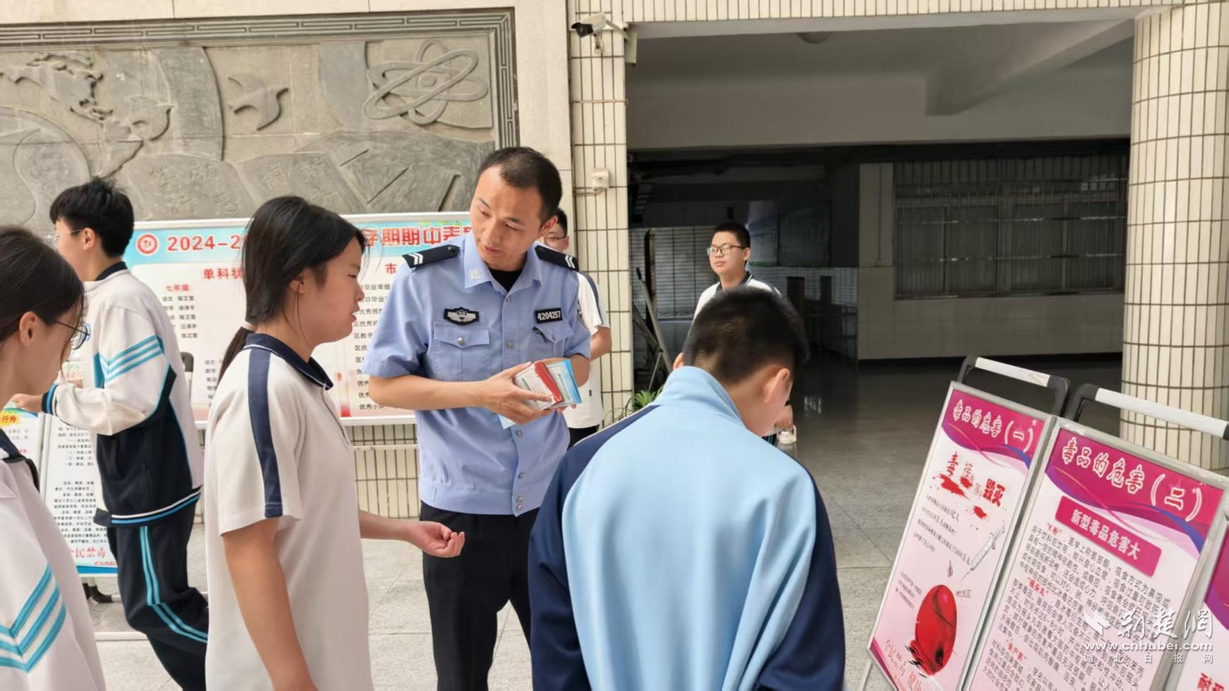 民警們通過禁毒知識展板講解、毒品實物模型展示、發放禁毒知識宣傳冊的方式,用親切、專業、耐心的解答,幫助師生們直觀感受新型毒品的欺騙性,進一步了解毒品危害。