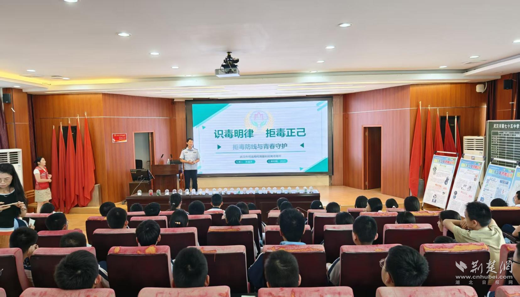 荊楚網(湖北日報網)訊(通訊員金豐)6月5日,武漢市司法局何灣強制隔離戒毒所受武漢市江漢區民意街道邀請,到武漢市第七十五中學開展以“全民共治 防范青少年藥物濫用”為主題的禁毒宣傳進校園活動。