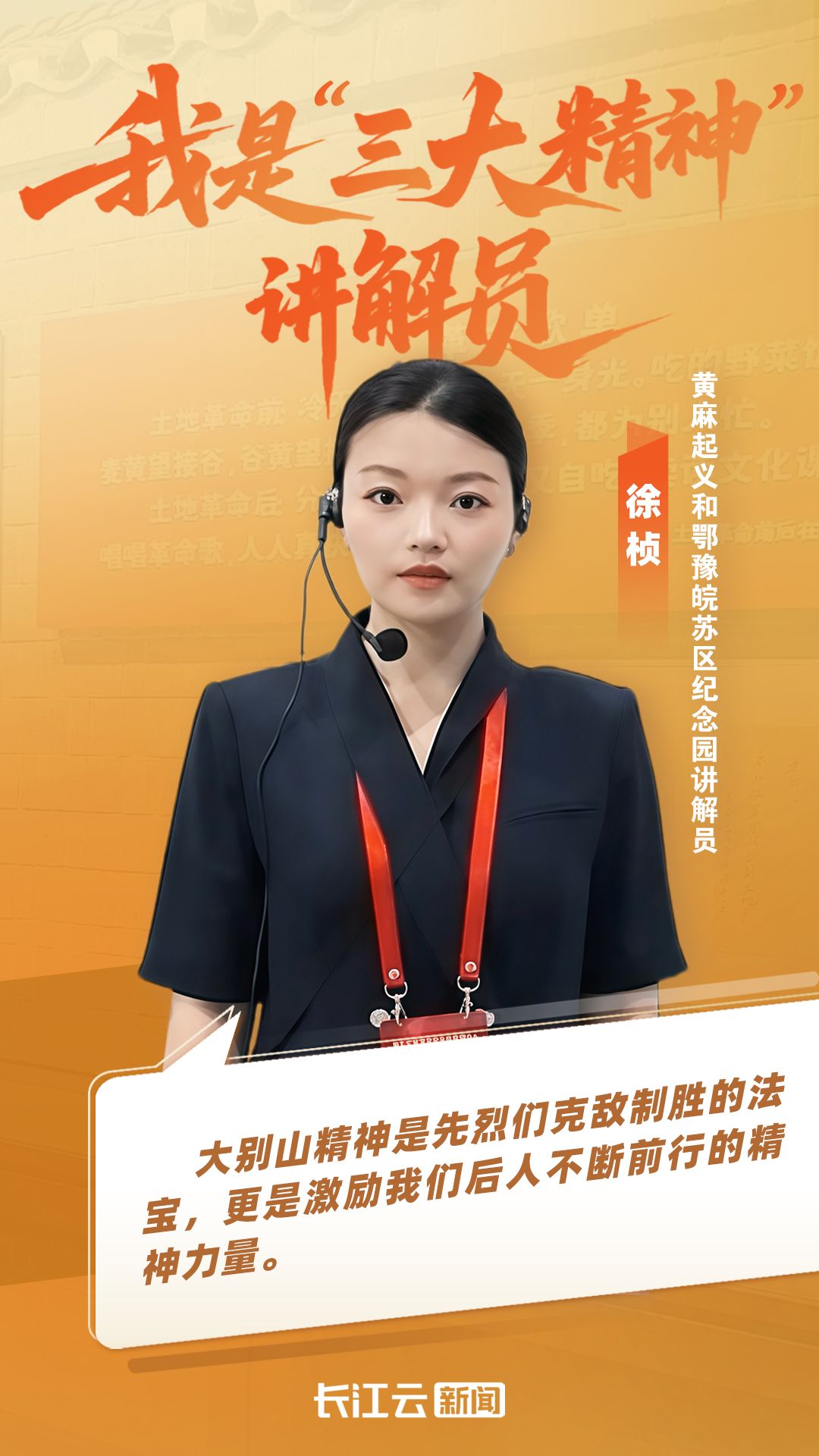 即日起,長江云新聞開設(shè)《我是三大精神講解員》專欄,鼓勵(lì)講解員結(jié)合歷史故事、親身體驗(yàn),將“三大精神”轉(zhuǎn)化為可感可知的生動(dòng)表達(dá)。本期特約黃麻起義和鄂豫皖蘇區(qū)紀(jì)念園講解員徐楨。