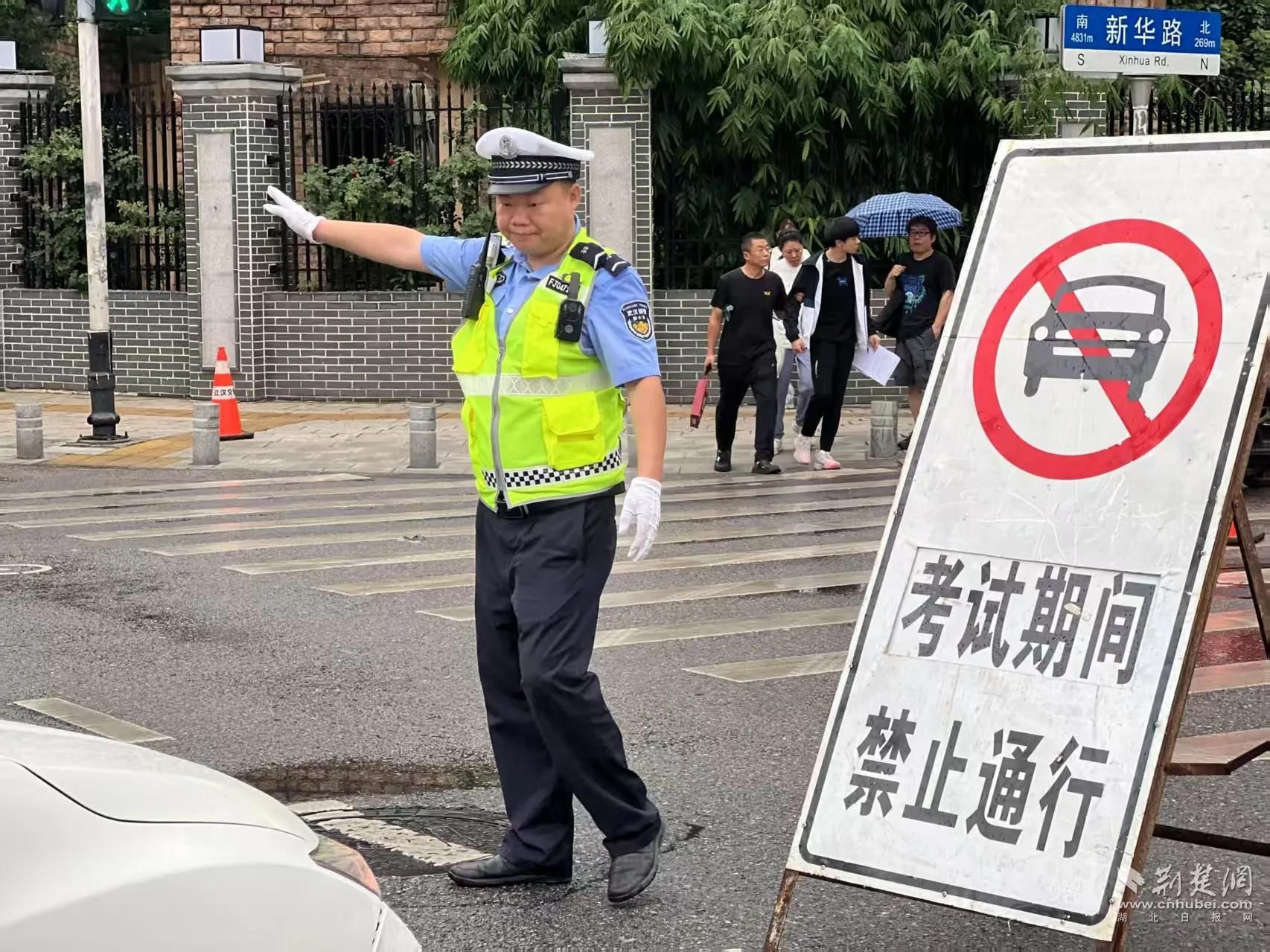 花絮一:7時許,東新交通大隊執勤民警為避免考點門前擁堵,主動為送考車輛開門,幫助考生快速下車,同時還通過“喊麥”方式進行提醒:985的考生家長們都上線,都上線!引導大家站到安全區內,考生與家長們都紛紛高興的配合。
