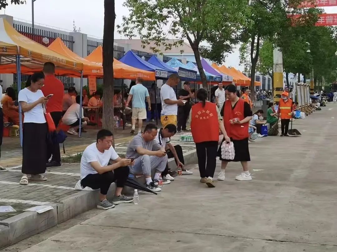 考點外,避雨遮陽棚如雨后春筍般搭起,眾多愛心企業(yè)設(shè)置了助考服務(wù)站,為考生、家長及執(zhí)勤人員送上飲用水、藥品與清涼。更有家長在體驗便捷送考服務(wù)后感動承諾:“未來我也要加入志愿者行列!”