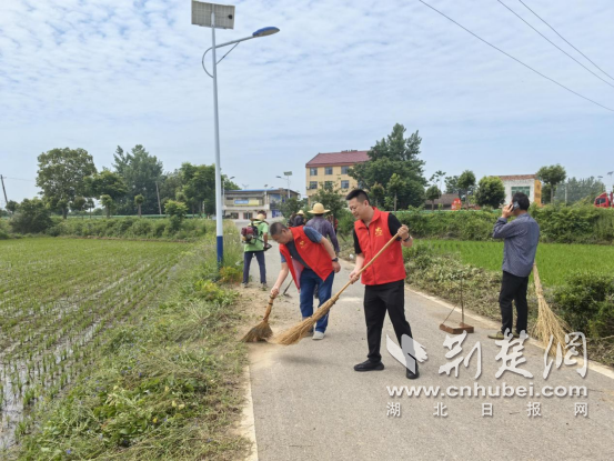志愿者與村民一起整理路邊雜草。通訊員供稿