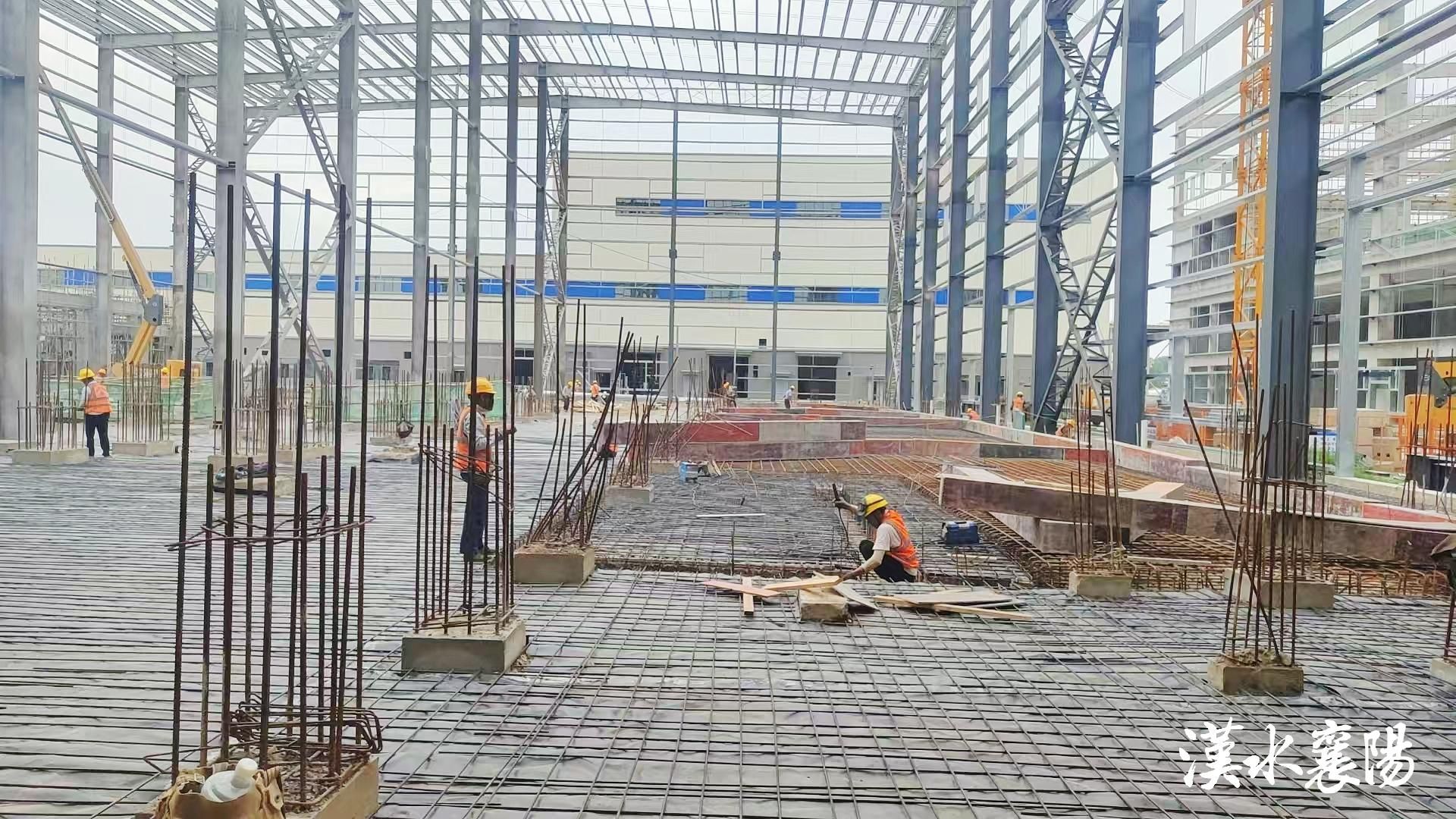 6月9日,在襄陽市襄城經濟開發區湖北睿派新能源科技有限公司項目建設現場,一臺臺大型機械在工地上往來穿梭,高大的鋼結構廠房拔地而起,數以百計的產業工人無懼酷暑,奮戰在項目一線。