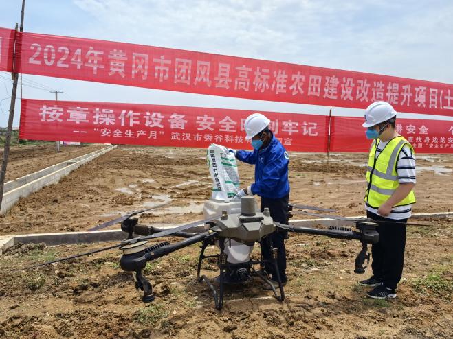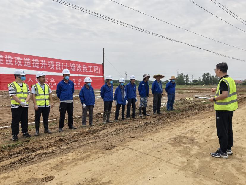 6月11日,在湖北省黃岡市團風縣高標準農田建設改造提升項目及鄂州市梁子湖區梧桐湖片區全域國土綜合整治項目土壤改良工程現場,安全生產應急小組開展生產前安全培訓、安全文明施工檢查、安全隱患風險排查等具體工作,針對安全卸載、安全堆碼、安全轉運、安全撒施、安全防護、禁酒禁煙、無人機安全操作、車輛設備合格、操作工持證上崗、專職安全員證件、安全應急方案等方面進行細致排查。