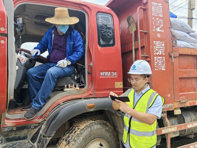 梧桐湖片區全域國土綜合整治土壤改良工程項目 專職安全員進行車輛設備及操作工證件檢查