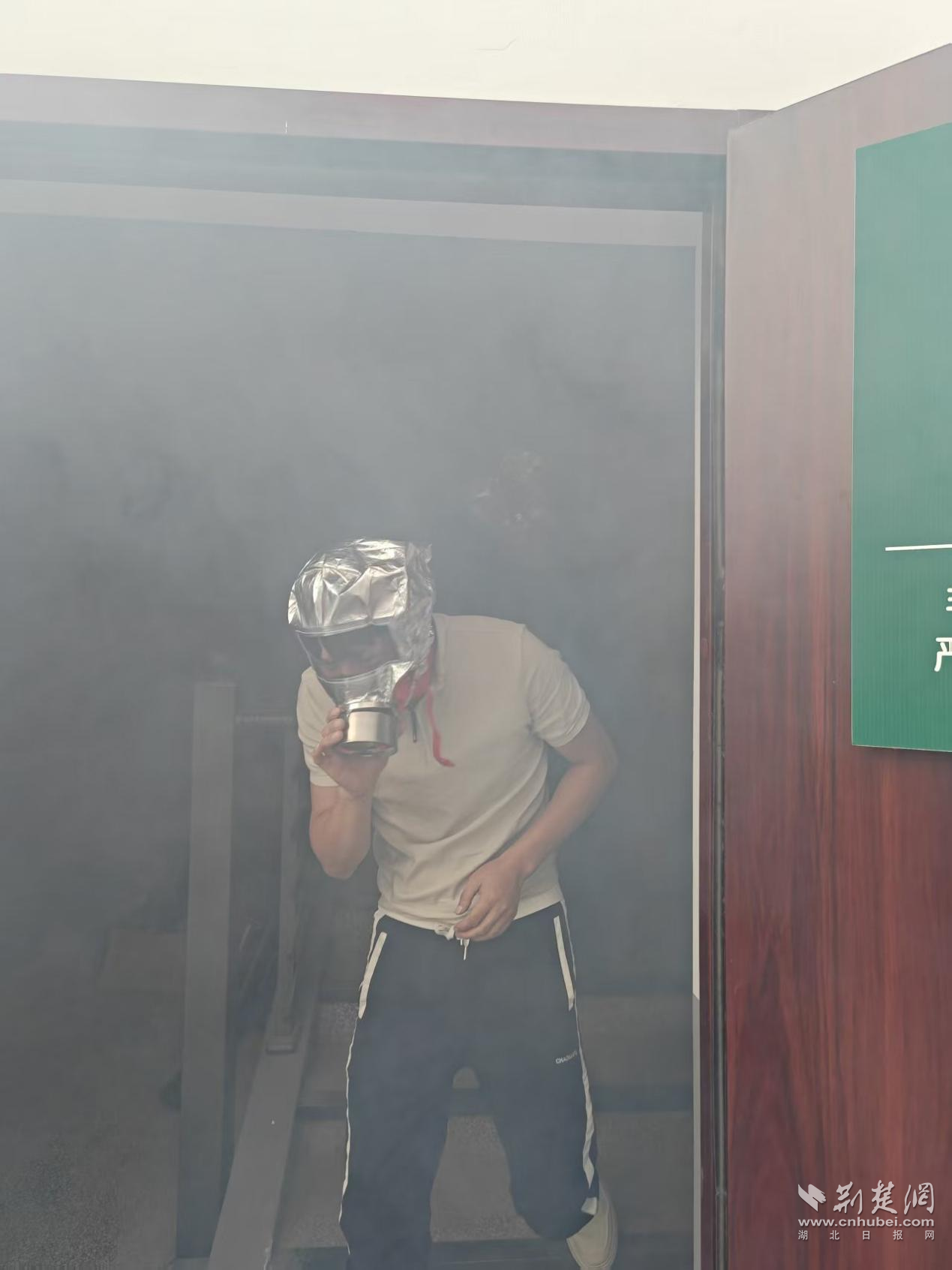 隨著警報聲響起,濃煙模擬裝置釋放“煙霧”,應急疏散演練正式開始。銀行部分員工通過培訓課上學到的知識,佩戴好過濾式消防自救呼吸器,迅速彎腰低姿,有的員工采用濕毛巾捂住口鼻,沿安全通道有序撤離至室外空地。宣講員全程觀察并隨機點評,幽默的提醒讓員工們在輕松氛圍中鞏固了逃生要領。