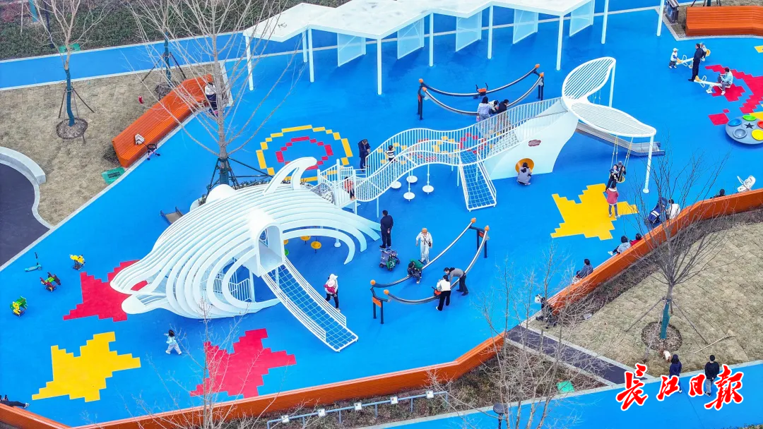 在剛剛公布的《城市兒童友好空間建設可復制經驗清單(第二批)》名單中,武漢市遠洋鯨奇兒童友好口袋公園改造項目榜上有名。這個以兒童友好為主題的口袋公園,有滿足兒童多元運動需求的區域,還有兼顧老人需求的健身設備、舒適座椅。