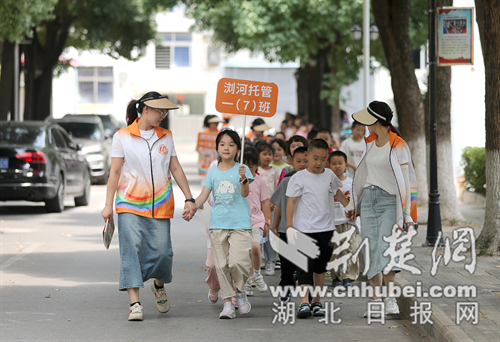 托育老師接孩子們放學,并提供生活照料、安全看護及學習輔導。通訊員 趙平 攝