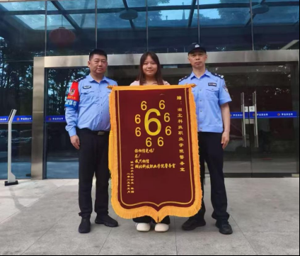 在警銀緊密配合下,僅用不到3小時,吳警官便將完好無損的手機交還到女生手中。幾天后,女大學生小吳專程將一面錦旗送到軟件園警務室,錦旗上醒目的“666”格外吸睛。她笑著解釋:“‘666’代表吳警官和銀行工作人員的辦事效率滿分!速度超快、服務超暖!”