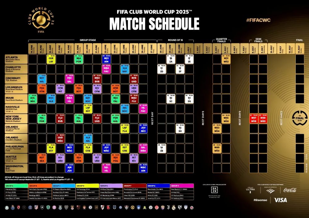 巴黎圣日耳曼(一排左)大戰馬德里競技(一排右)、拜仁(二排左)迎戰博卡青年(二排右)、曼城(三排左)對決尤文圖斯(三排右)