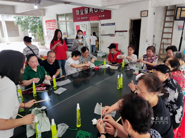 活動還設置了手工養生錘制作環節,居民們兩兩一組,互相配合,共同完成養生錘的制作。在穿針引線、裁剪縫合的過程中,鄰里間的情感得到進一步增進,健康生活理念也在交流互動中悄然傳遞。