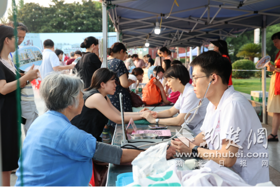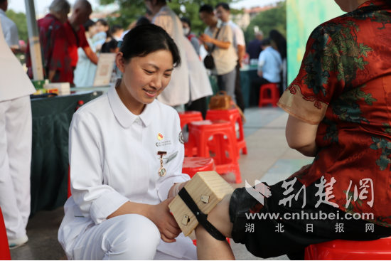 在醫療義診區域,市民朋友們早早排起長龍,荊門市中醫醫院專家團隊為市民提供體質監測、健康咨詢、非遺療法體驗等多元服務,讓千年醫理走進百姓日常。