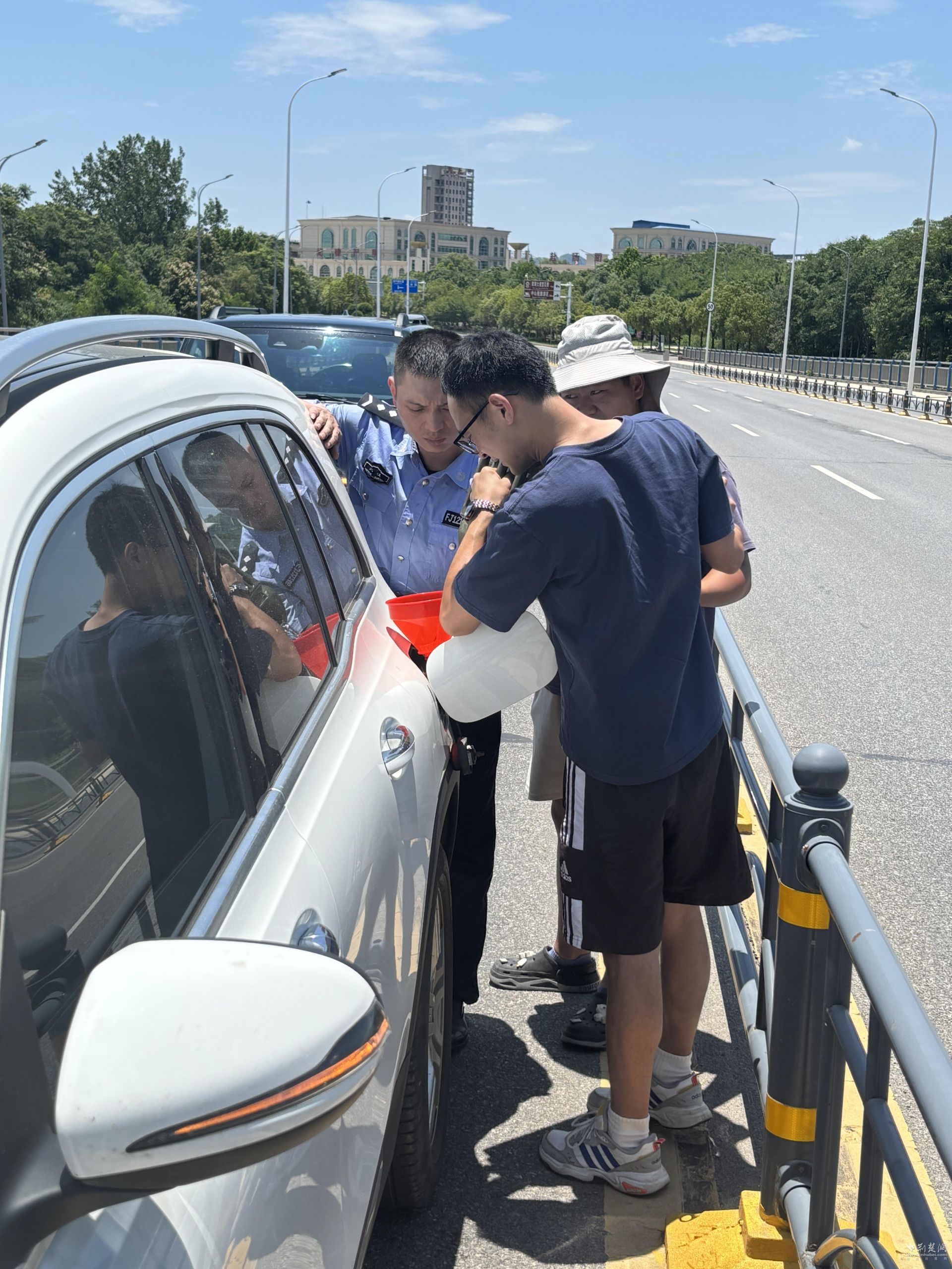 荊楚網(湖北日報網)訊(通訊員 湯文慧 徐菲)6月14日12時,江夏區公安分局交通管理大隊藏龍島中隊民警陳吉與輔警常樂巡邏至藏龍二橋時,發現一輛汽車竟停在道路中央,嚴重影響通行秩序,且存在極大的交通安全隱患。