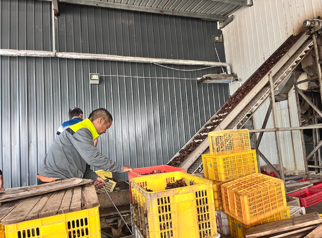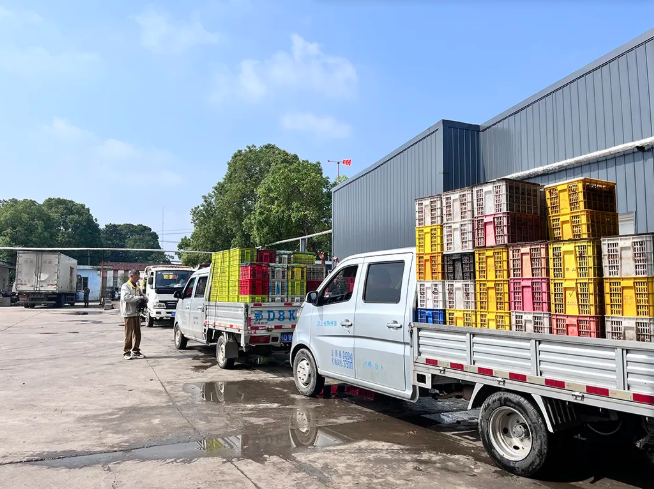 湖北波濤水產食品有限公司廠區內,一輛輛滿載小龍蝦的貨車首尾相接,工人們動作嫻熟地將一箱箱小龍蝦從車上卸下,隨后迅速開始盤貨、分揀工作。他們憑借多年的從業經驗,依據小龍蝦的個頭大小、品質優劣進行分類,為后續生產加工做準備。