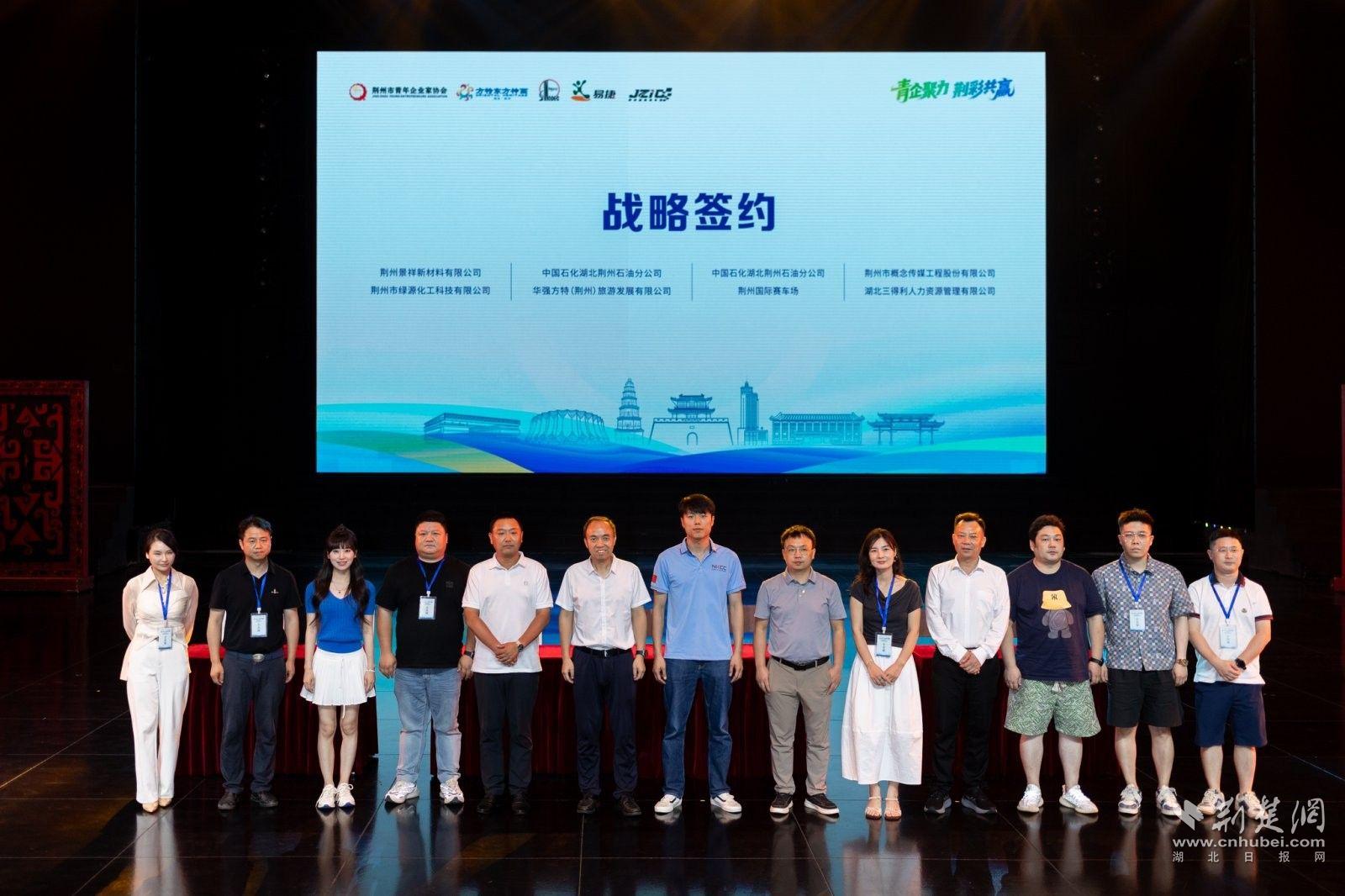 現場,中國石化荊州分公司、華強方特東方神畫、荊州國際賽車場及荊州市青年企業家協會會員單位等7家企業共同簽署多項戰略合作協議,攜手青年企業家,聚力綠色轉型、民生服務、產業聯動,共同打造低碳生態圈、美好生活圈和產業發展新空間,為荊州經濟社會高質量發展注入新動能。協議中,既有在中國石化愛心驛站增設文旅服務的“小目標”,也有打造華中地區首個“零碳”文旅綜合體的“大規劃”。