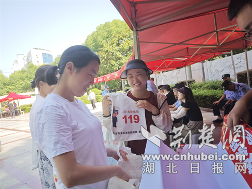消防宣傳員為群眾發放文創禮品。通訊員供圖